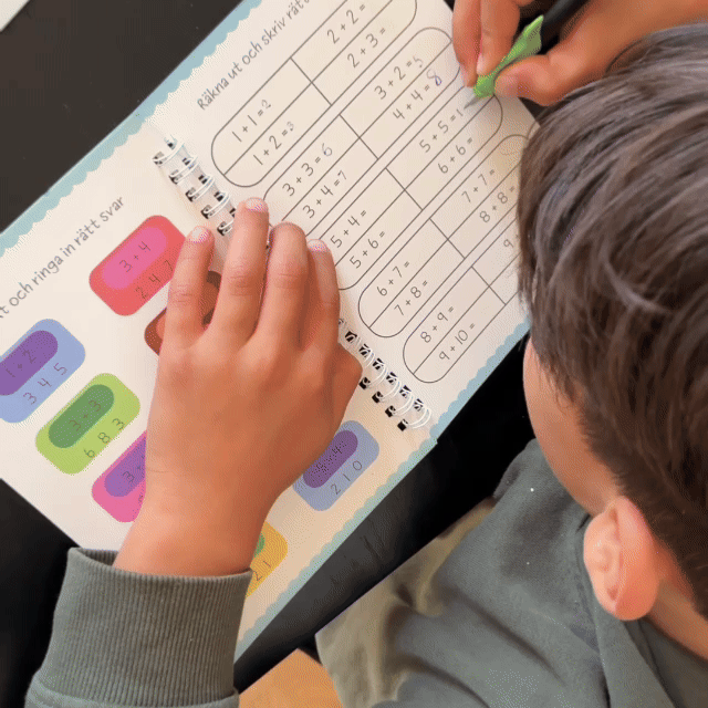 Hvert sett inneholder penner med magisk blekk som falmer etter 10 minutter – slik at barnet ditt kan øve flere ganger på samme side. Du trenger ikke utskrifter eller nye bøker hver uke.
